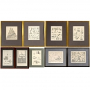 9 Engraved Book Plates showing Microscopy, Astronomy and Surveyi