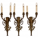 Set of 3 Two-Branch Ormolu Wall Sconces, c. 1920