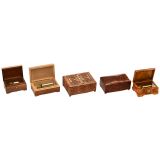 5 Small Musical Boxes by Thorens, c. 1930 onw...