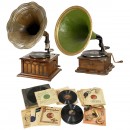2 Horn Gramophones, Discs and Spare Parts