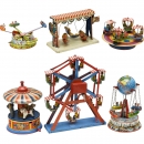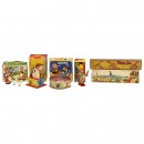 6 Lithographed Tin Toy Fairground Carousels, c. 1950-60