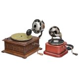 2 French Gramophones for Vertically-Cut Discs...