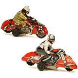 3 Lithographed Tin Toy Motorcyclists, from 19...