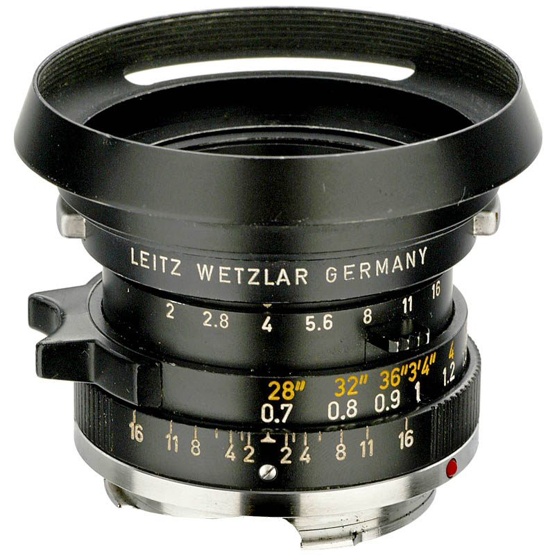 Leitz, Canada. No. 2461962, black, third computation (six-element design). Very unusual early third computation lens with protruding aperture control lever, but no E39 filter threads! (See Lager, volume II, p. 158). With lens hood 12504 and container. Rarity!