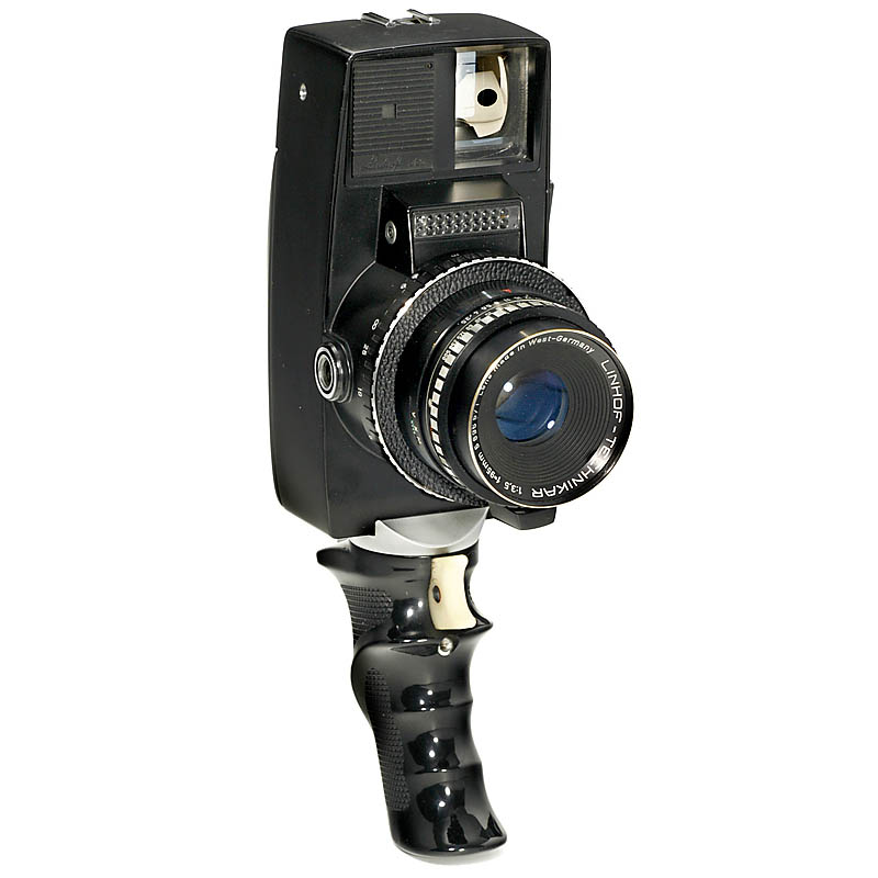 Linhof, Munich. Rollfilm camera, size 56 x 72 mm, Technikar 3,5/90 mm, Synchro-Compur, rangefinder and light meter working, strap lugs missing.