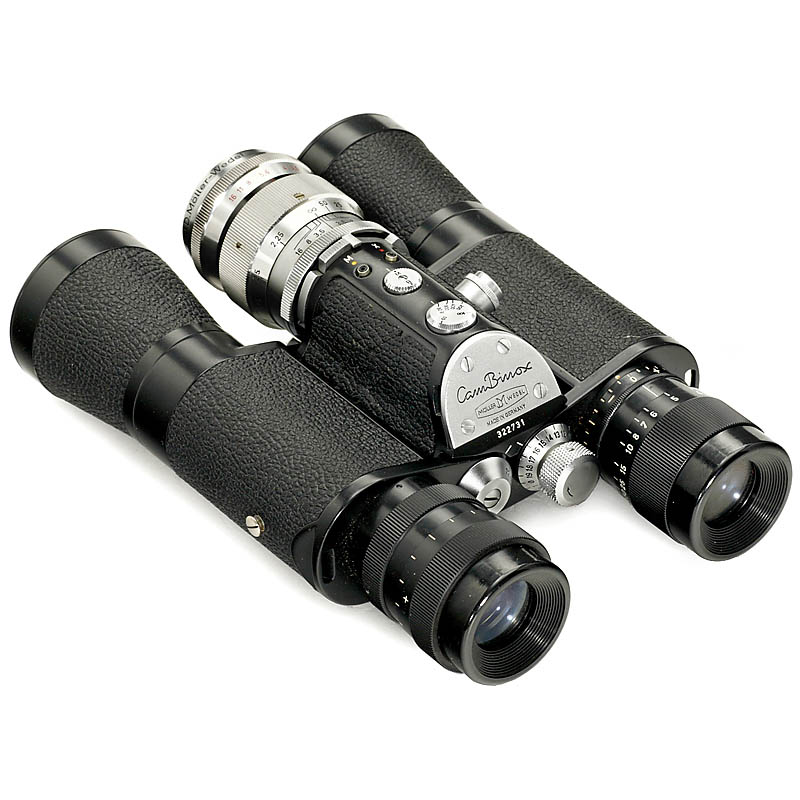 J. D. Möller, Wedel. No. 322731. Classic German binocular camera. Binoculars 7 x 35 with subminiature camera, size 10 x 14 mm, Idemar 3,5/90 lens (interchangeable). Classic collector’s camera!