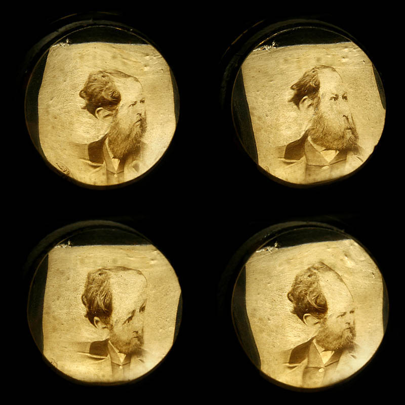 Patented French viewer for creating distorted images from normal photographs, by Jules Duboscq, Paris. Named after the Greek word "grimatsa" (French "grimace" or English "grin"). After winding, a springmotor rotates a distorting glass disk and the viewer presents various humorous and grotesque distortions of the image. – Height: 5 in. – This extremely rare viewer is one of the precursors of the so-called "Photographic Transformists" which Louis Ducos du Haurdon described in 1889! – Literature: 1) Aaron Scharf, "Art and Photography", 1975, p. 233 ff. – 2) Paul Wing, "Stereoscopes", 1996. – Only 2 other examples are known worldwide!