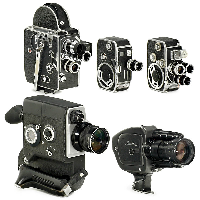 – Add-on: 8mm movie camera equipment for Bolex and Beaulieu cameras with lenses, handgrips, chargers, handcranks, auxiliary lenses, cameras for spare parts and instructions.