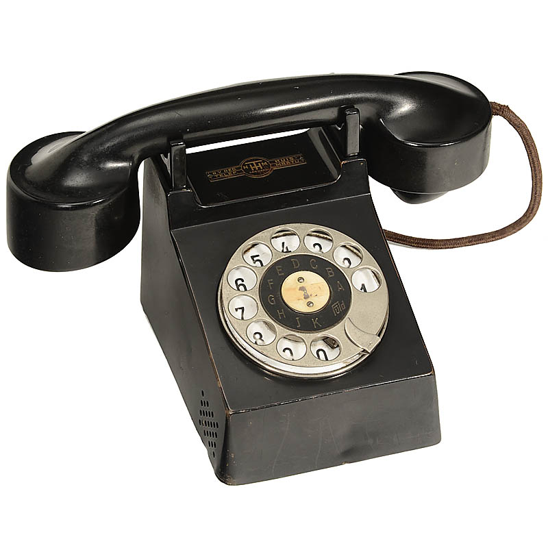 Dial table telephone, design and construction "Fuld & Co, Frankfurt" in connection with "Bauhaus/Dessau", marked "Fuld" with additional label of the Dutch telephone