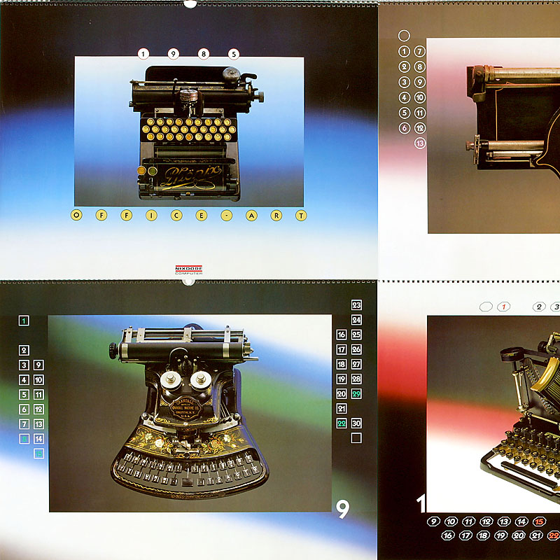 With 12 posters of beautifully designed rare and important typewriters. Giant size: 25 2/3 x 19 in.
