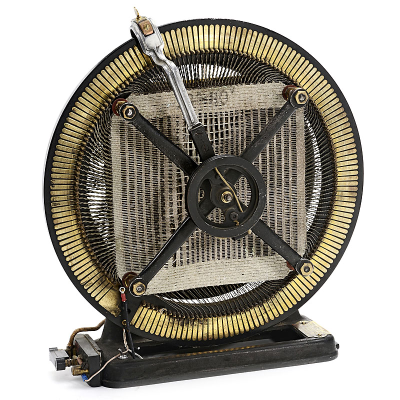 Infinitely adjustable electrical resistance, manufactured by: "Cilémancon, Paris", 28 amps, 220 V, cast-iron frame, height: 19 5/8 in. – Used for the illumination of cinema and theater halls.