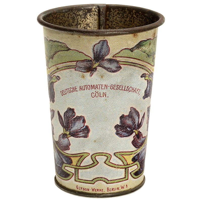 1) A rare tin cup "Deutsche Automaten-Gesellschaft Cöln" (Stollwerck).