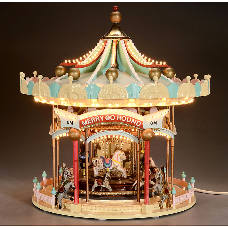 Fairground model, wood and metal, hand-painted, electric light and motor, Ø 19 in., height: 19 ½ in.