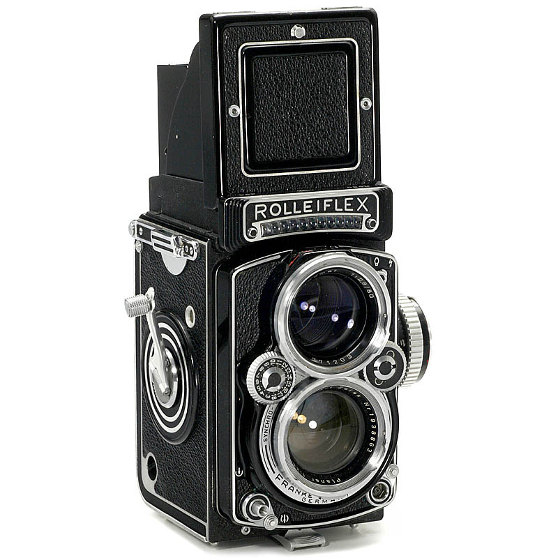 Franke & Heidecke, Braunschweig. No. 1639711, Planar 2,8/80 mm, no. 1938863, Synchro-Compur, light meter, with lens cap, case and rare bakelite light meter cap.
