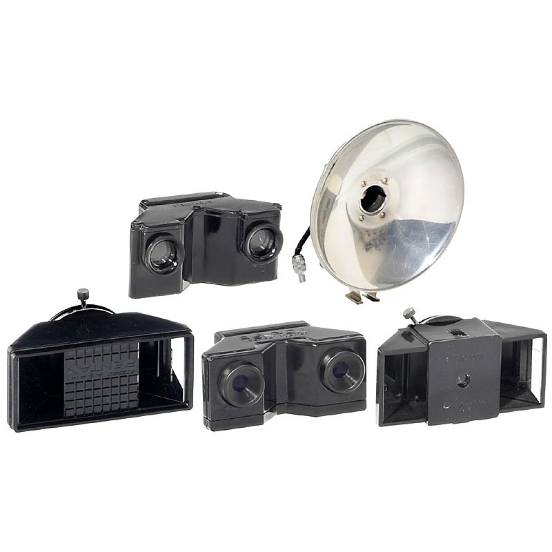 2) Sun Optical, Japan. Stereo-Sun Kit, for size 18 x 24 mm, with box. – Add-on: Flash unit for Stereo-Hit, with box.