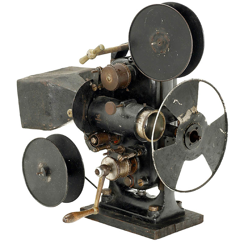 Hahn-Goerz, Dresden. Rare silent movie kinetoscope head for 35mm film, handcrank and lens.