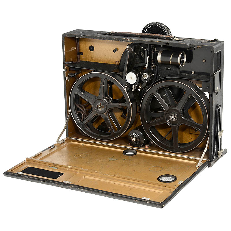 Zeiss Ikon, Dresden. 35mm portable movie projector for silent movies, for 400m film spools, with 2 spools, electric motor drive, electrical functions not tested.