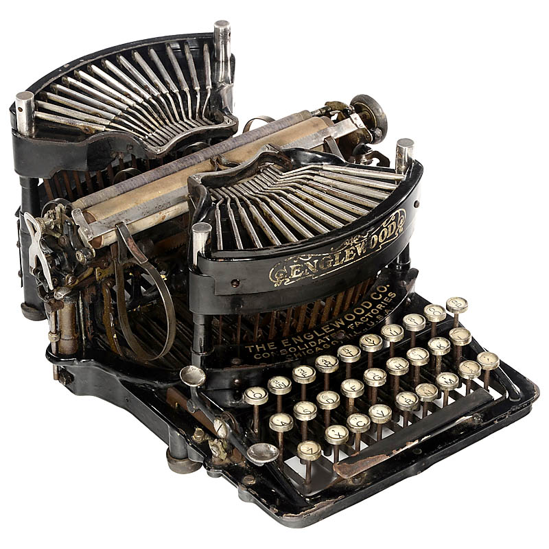 Rare model name of the American 3-row typebar machine with "Grasshopper" mechanism. Escapement faulty. Only one ink pad (loose).