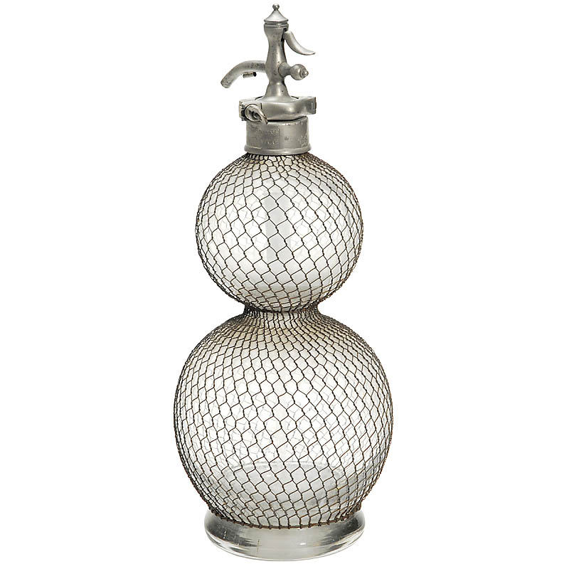 Manufactured by: "British Siphon Company", mouthblown glass, in shape of a double goard, mesh cover height 19 5/8 in.