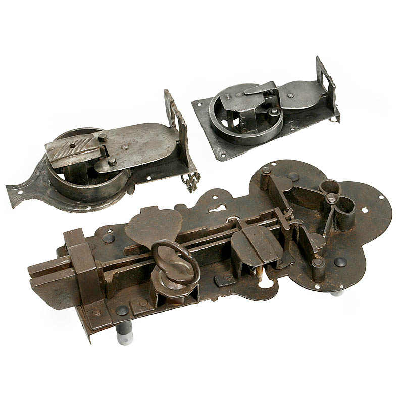 Wrought-iron, size 13 ¾ x 7 in., 7 4/5 x 4 ¾ in. and 6 x 4 1/3 in. 17th Century.