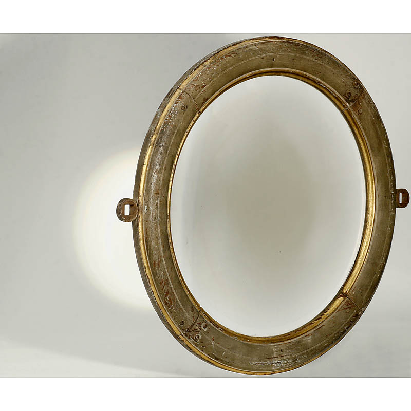 18th Century. For physical experiments generating very high temperatures, mounted in wooden frame with gilt edges, 2 loops, diameter of the glass 17 in., overall Ø 22 in. In this size very rare!