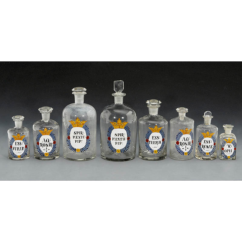 8个药剂师用玻璃器皿 (8 Pharmacy Glass Bottles)