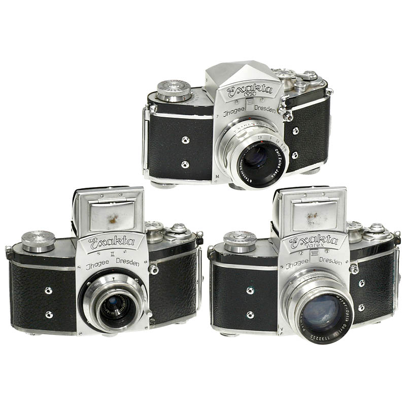 3) Exakta VX, no. 769157, 1955年, 五棱镜取景器, 有印章 "U.S.S.R occupied", Tessar 2,8/50 T镜头. (2-/3+)