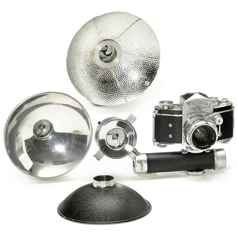 4) 小型Ihagee闪光灯, 附带支架, 相机套, 说明书和纸箱. (3/2)