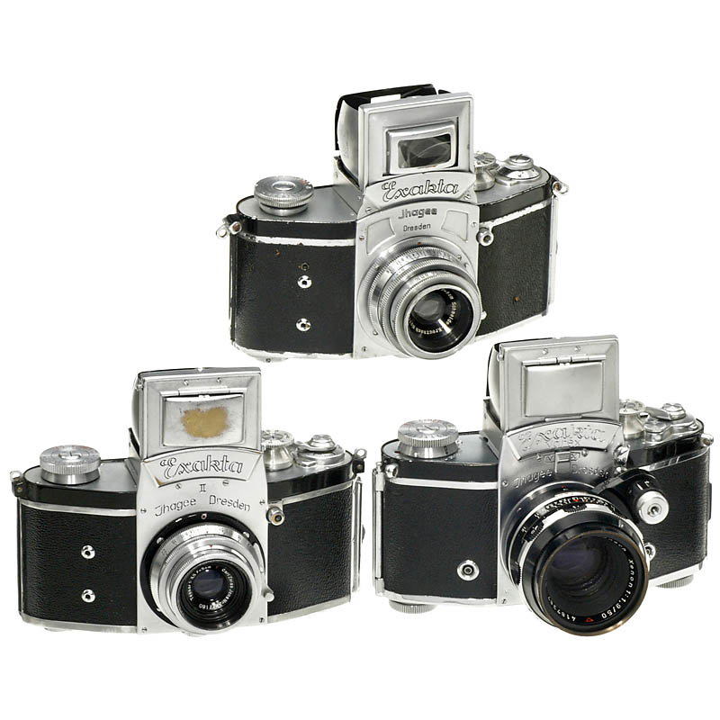 2) Exakta II, no. 672477, 1950年, Tessar 3,5/5 cm镜头. 这台相机是非常罕见的第三代版本(Aguila & Rouah, DDP Image, 2003年) 附带一台固定的Varex 取景器! (3/3)