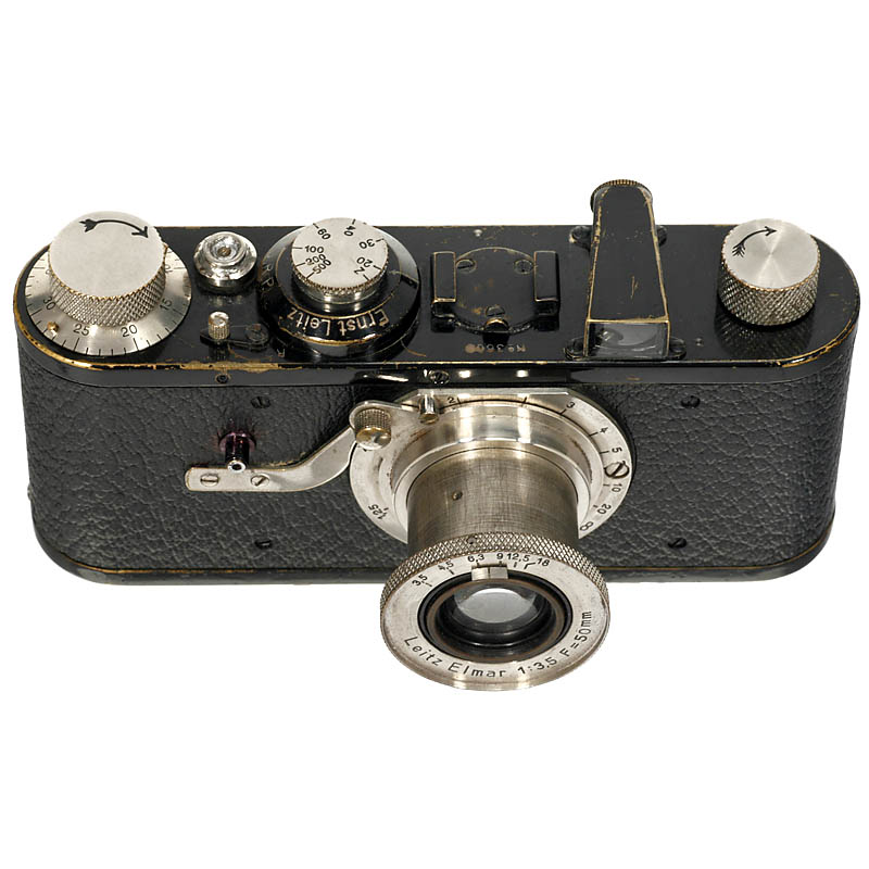 四位序列号: no. 3609, 粗硬橡胶, 羽毛箭, 开机按钮不是原装的, 同步的, Elmar 3,5/50 mm镜头, 有镜头盖.