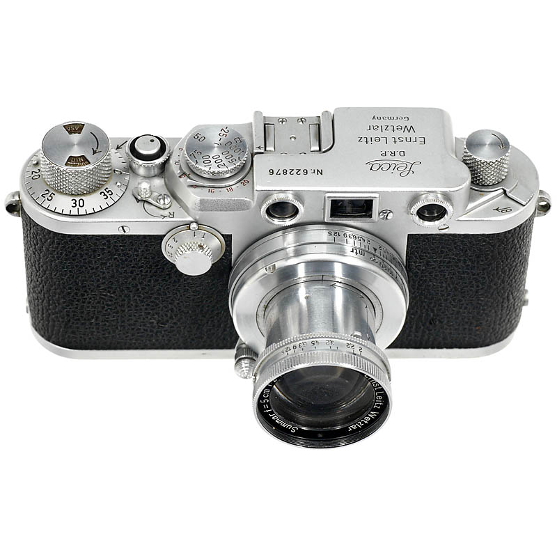 Leitz, Wetzlar. No. 622876, 红色同步刻度, 无自动定时器, 目镜丢失. 附带Summar 2/5 cm镜头, no. 198778, 镀铬, 米刻度.