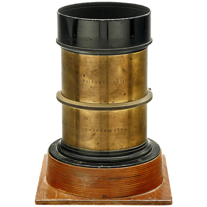 Hugo Meyer & Co., Goerlitz, No. 169832, 约1904年.黄铜镜头, 虹彩光圈, 连镜头板的镜头高度是28 cm, Ø 14cm, 干净的镜头!