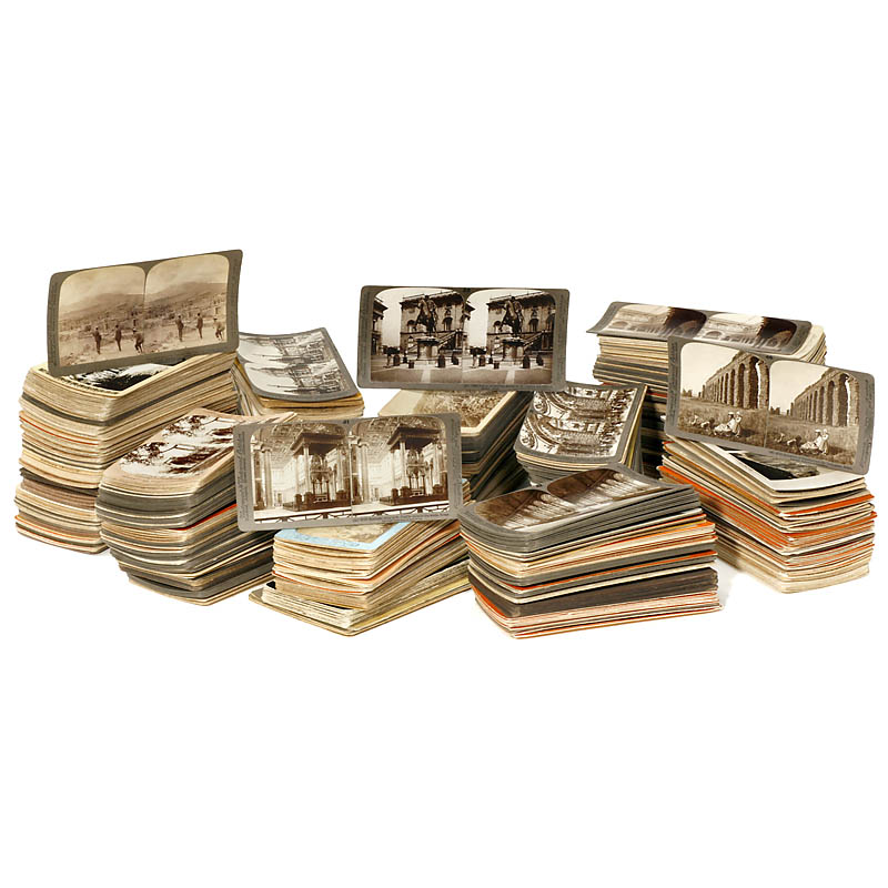 立体观影器, 图片和幻灯片 9 x 18 cm 专用. 带大约 600 张立体图片 9 x 18 cm: 德国, 英国, 南非, 中国, 日本, 法国, 美国, 西班牙和其他国家! 一台完美的Lot观片器!