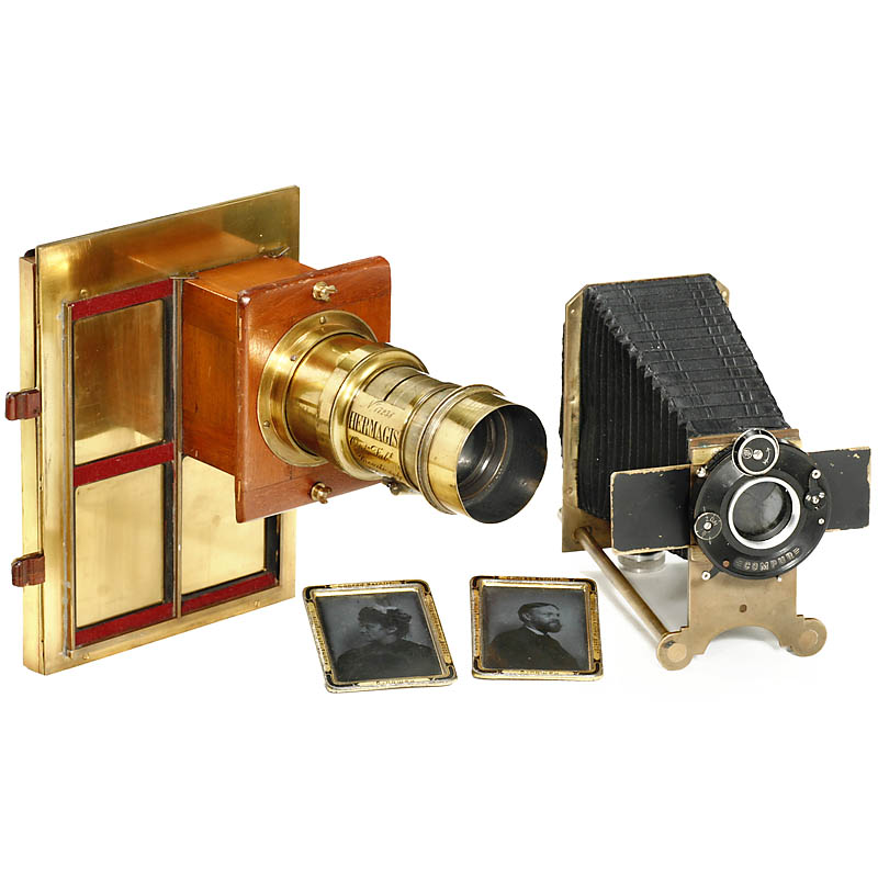 1) Bench-built. Multiplying camera for 4 photographs, 尺寸55 x 70 mm, 胶片规格 13 x 18 cm, 原装 Hermagis 镜头(约1880年).