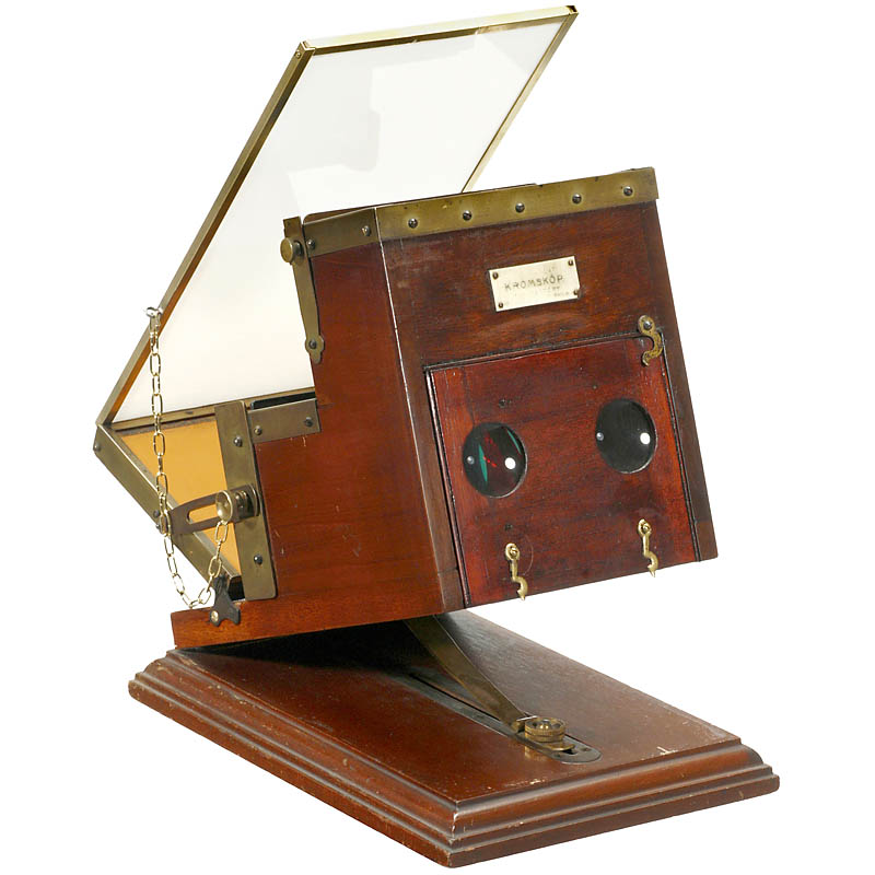 The Photochromoscope Syndicate Ltd., London, no. 118, 带完整的一套滤色镜. 红木机身带黄铜覆层. 成色出色! 不管是对于立体摄影还是三色摄影的历史, 都是一件罕见的收藏品. 带12对原装立体彩色图.