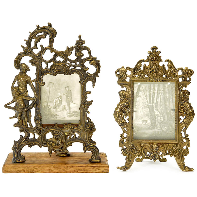 2) No. 1141: "树林里的女人和狍子", 11 x 13 cm (断裂后修复). 用小烛夹放在黄铜立架上.