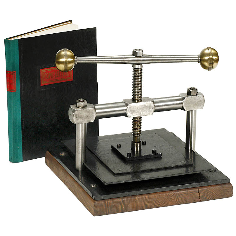 Unmarked press, size 14 x 14 x 14 ½ in.; book with 500 pages.