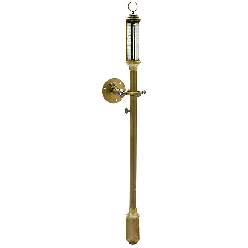Signed on the scale: "P.T.F.R. 16 a 22 Roby Liverpool", brass case with gimbal and wall mount, height 38 in.
