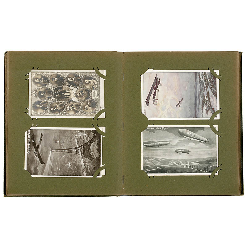 Approx. 490 German patriotic and war postcards. With among others rare arms of the service (aeronauts, marine aircrafts and field railroader). Humorous and serious motifs. In 3 scrapbooks.