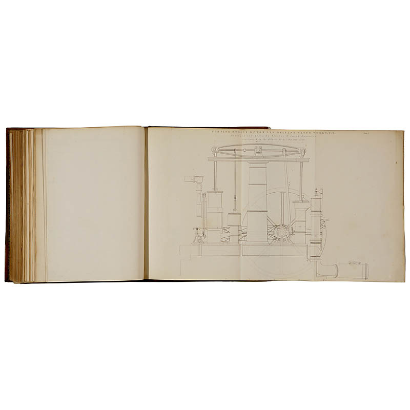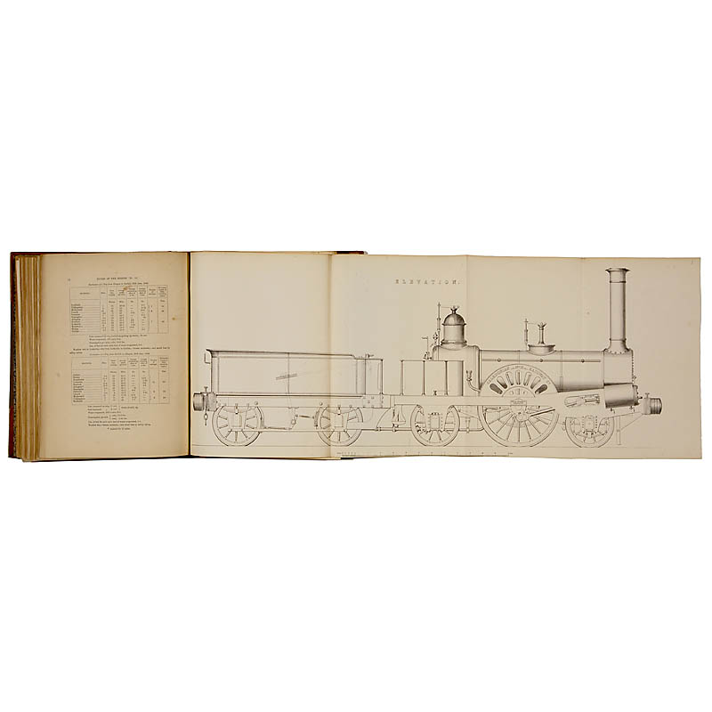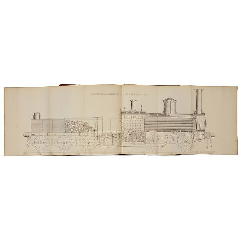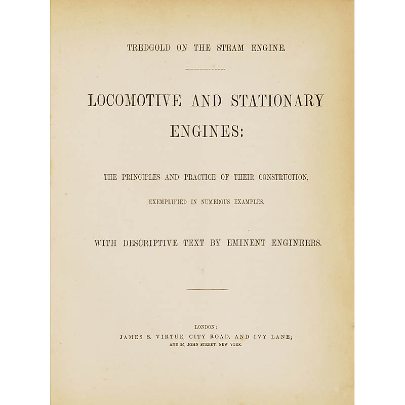 T. Tredgold: "Locomotive and Stationary Engines", publisher "James S. Virtue", London, approx. 350 pages, 61 copper plates, mostly folded, half leather bound, some pages partly yellowed, good condition.
