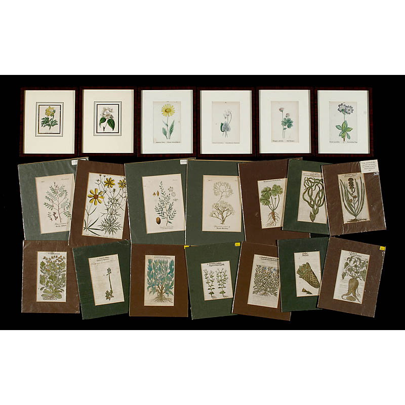 1) 10 wood engravings, hand-colored, from: Gerarde and Johnson, "The Herbal or Generall Historie of Plantes", 1597, each approx. 3 1/6 x 5 in.