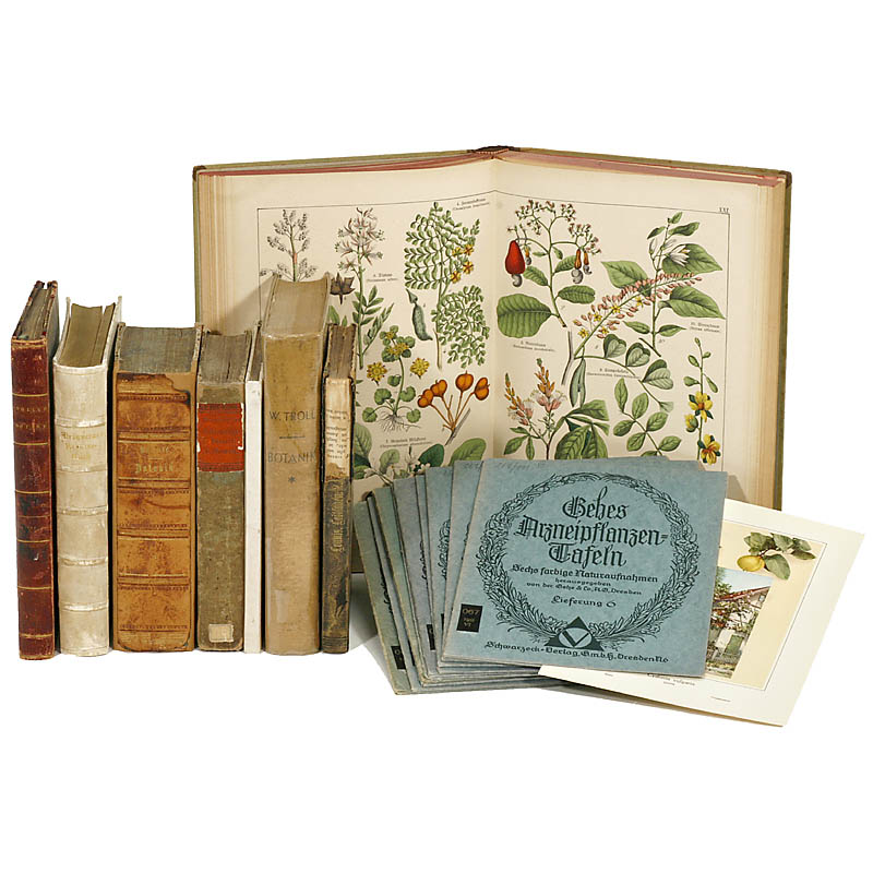 5) 9 Mappen "Gehes Arzneipflanzen Tafeln", with 6 nature photographs (colored) each, Dresden, c. 1930.