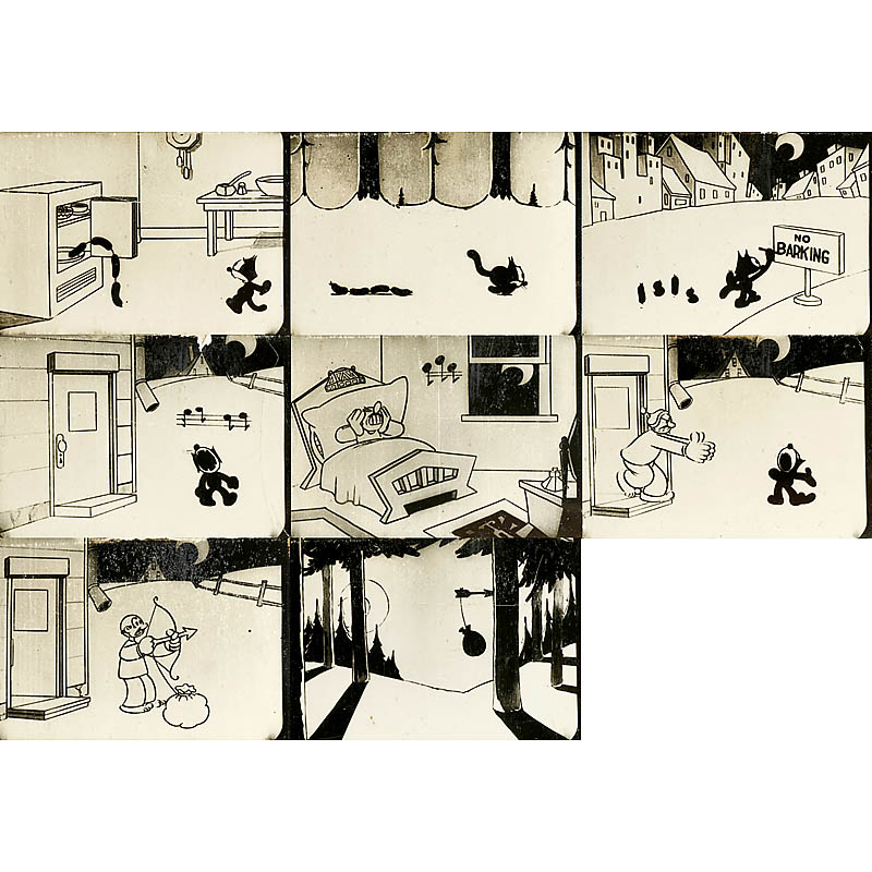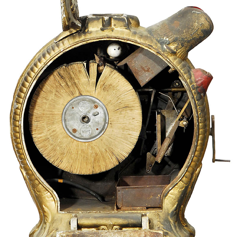Spectacular coin-operated arcade machine, electric light source (110 V), with original Mutoscope reel no. 7713 "Felix the Cat", front with children's stand, overall height 77 in., case with some small cracks and missing parts, good working condition.