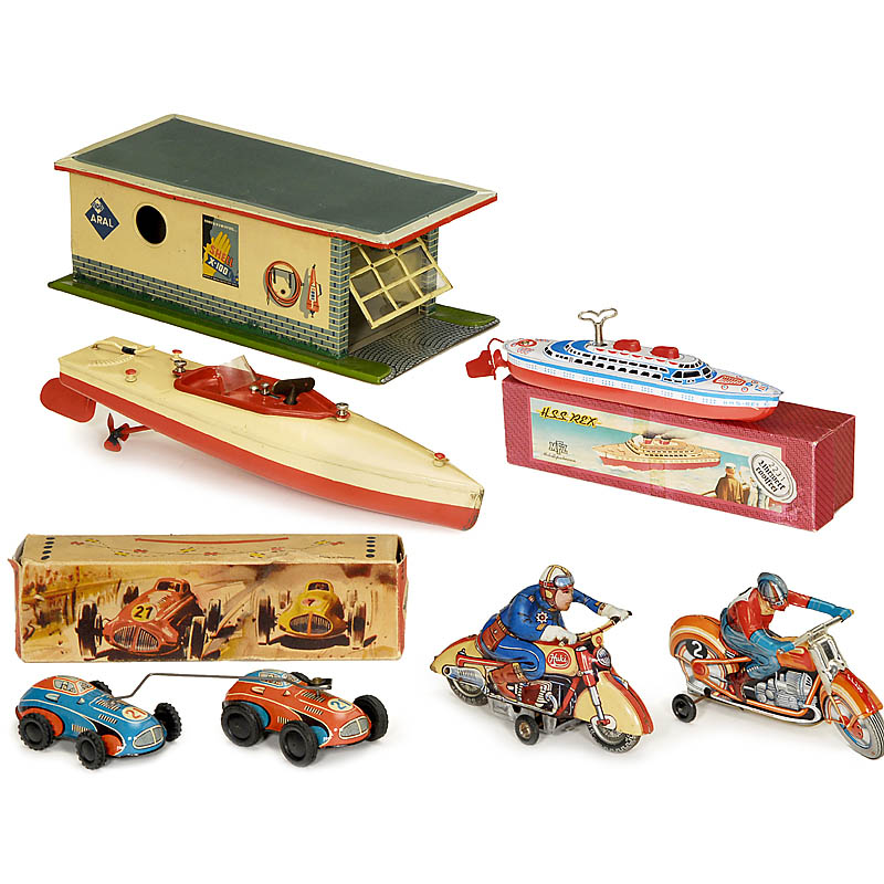 1) "Huki", racing motorcyclist, friction, length 7 in.