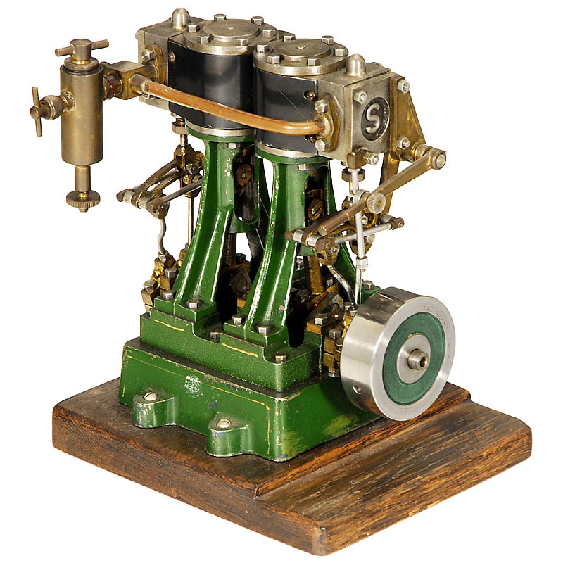 Model 10V-D, 2 cylinders, flywheel Ø 1 ¾ in., size 6 x 5 ½ x 6 ½ in. – A very detailed model.