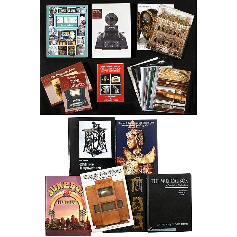 Addon: 2 books on sewing machines, 1 book "Slot Machines", 1 book "Jukebox Heaven", 1 book "Historic Televisions" and 1 book "Tickling the Crystal".
