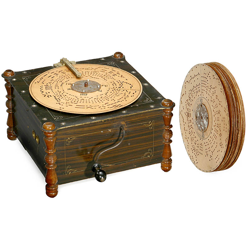 By "Paul Ehrlich", Germany, 24 reeds, for cardboard discs, with 51 discs, in good playing condition. – Addon: Framed picture with Ariston.