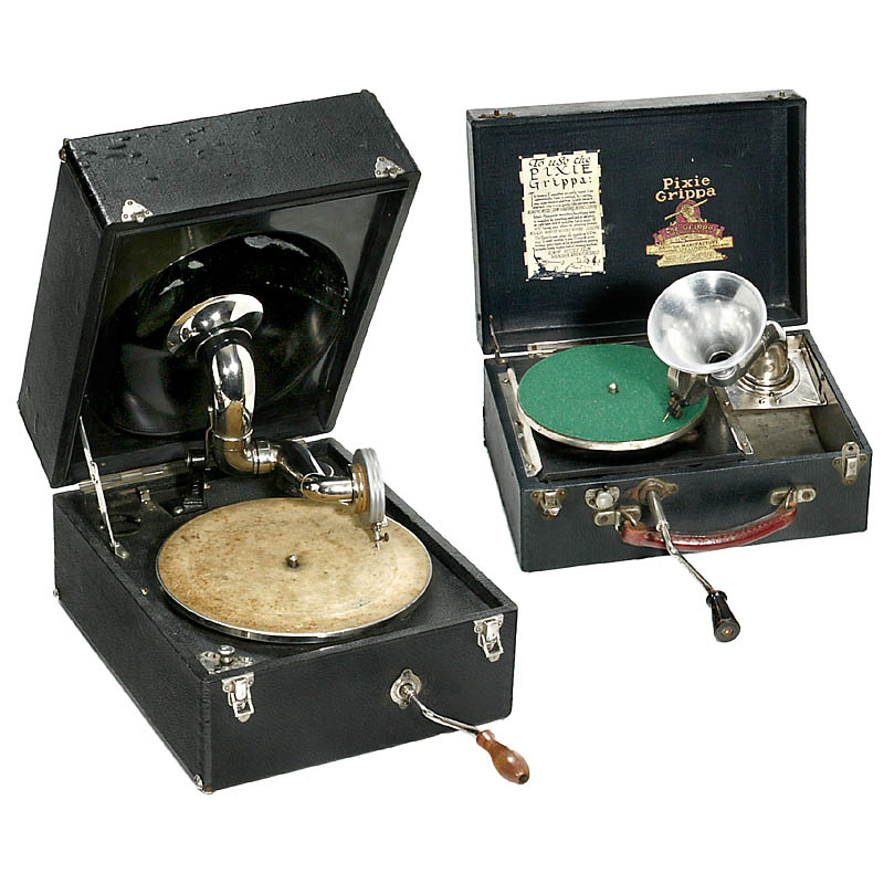 1) "Pixie Grippa" , manufactured by "Perophone, Eng-land", with additional miniature aluminum horn, work-ing.