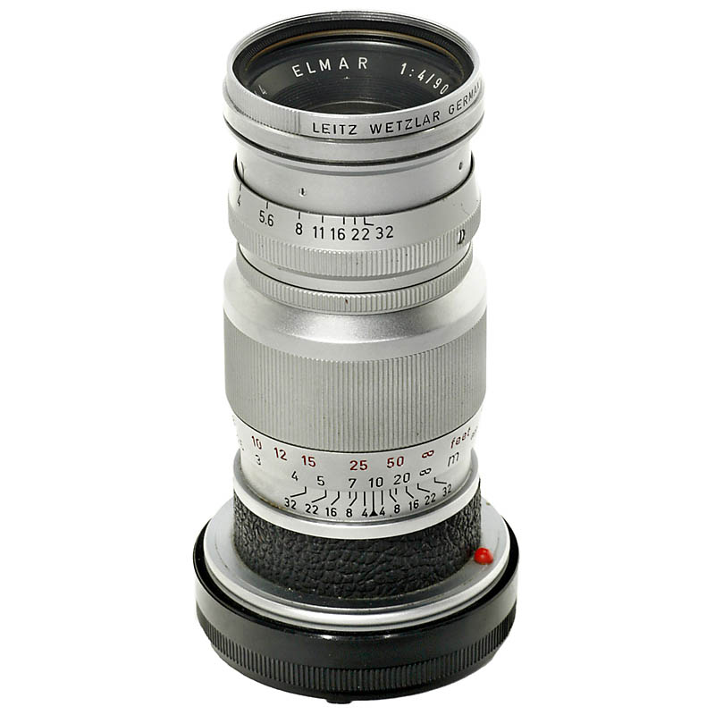 Elmar 4/90mm, 1960, Leitz Wetzlar, No. 1766544, 带滤镜, 39mm, 遮光罩和镜头后盖