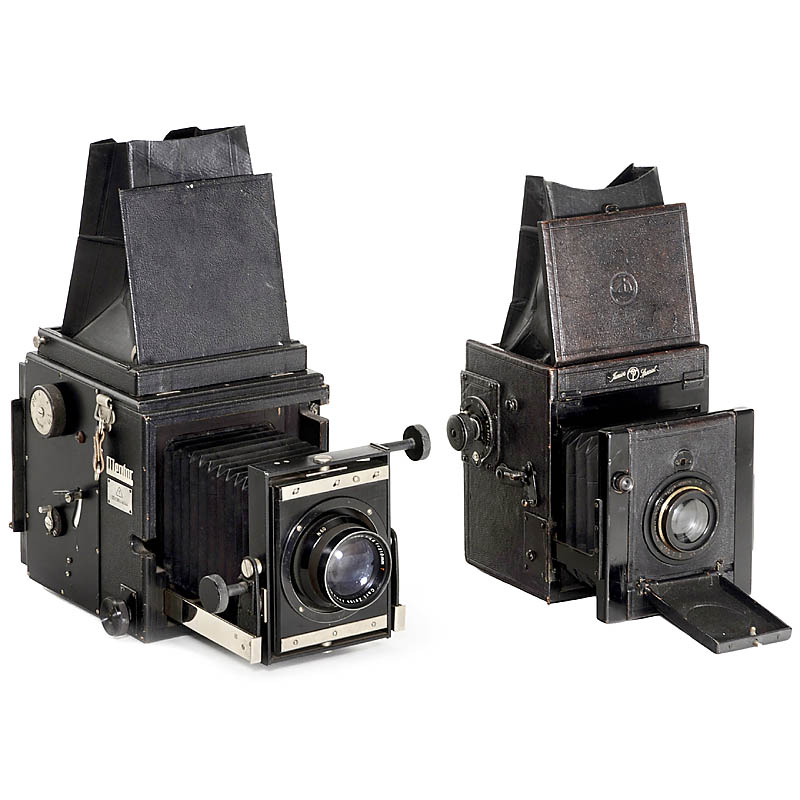 1) Mentor-Kamerafabrik Goltz & Breutmann, Berlin &Dresden. Mentor Studio Reflex, c. 1960, 9 x 12 cm (with Rada rollfilm back 6 x 9 cm),